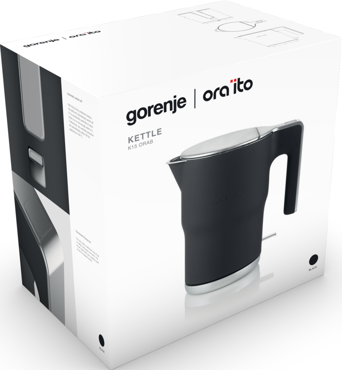 Gorenje | Kettle Ora Ito design | K15ORAB | Electric | 2400 W | 1.5 L | Stainless Steel | 360° rotational base | Black
