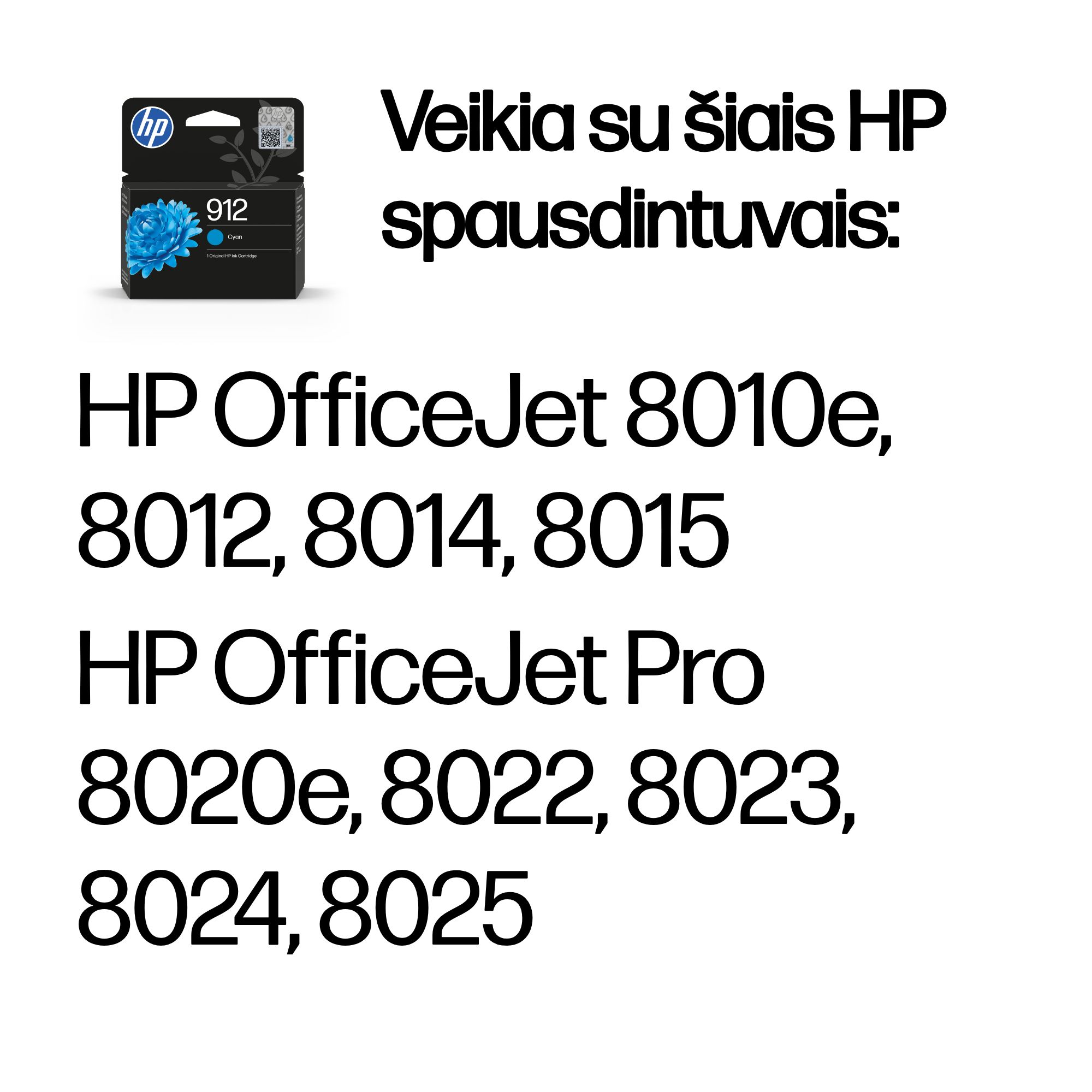 HP 912 ink cartridges work with: HP OfficeJet 8010e, 8012, 8014, 8015 HP OfficeJet Pro 8020e, 8022, 8023, 8024, 8025