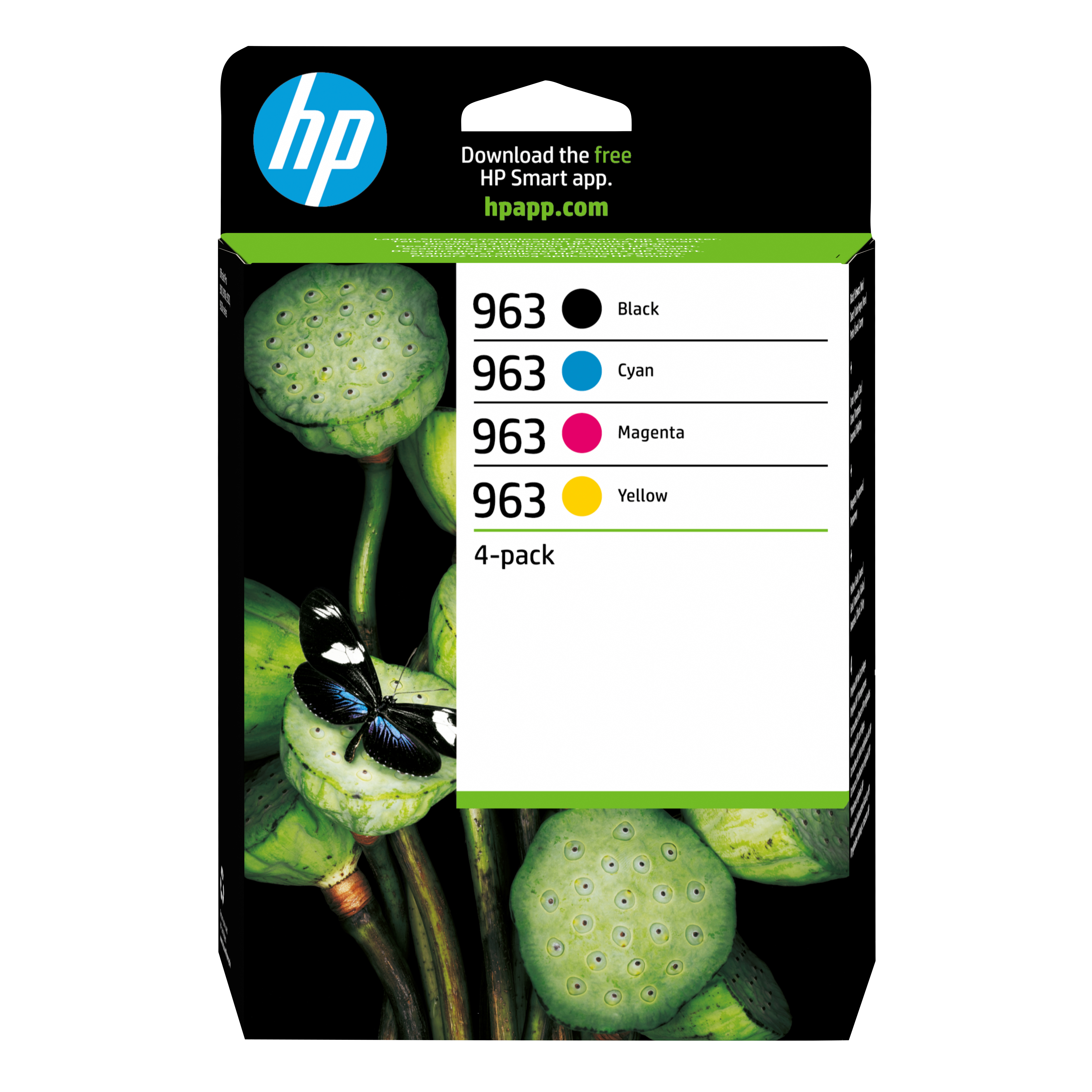 HP 963 4-pack Black/Cyan/Magenta/Yellow Original Ink Cartridges. Spalvoto rašalo tipas: Pigmento pagrindo rašalas, Juodo rašalo tipas: Pigmento pagrindo rašalas, Rašalo kasetės tipas: Standartinė išeiga, Juodo rašalo kiekis: 47,86 ml, Tiekimo tipas: Rinkinio pakuotė, Spalvoto rašalo puslapio išeiga: 700 puslapiai, Spausdinimo spalvos: Juoda, Žydras, Rausvai raudona, Geltona, Kiekis pakuotėje: 5 vnt, Juodo rašalo puslapio išeiga: 1000 puslapiai