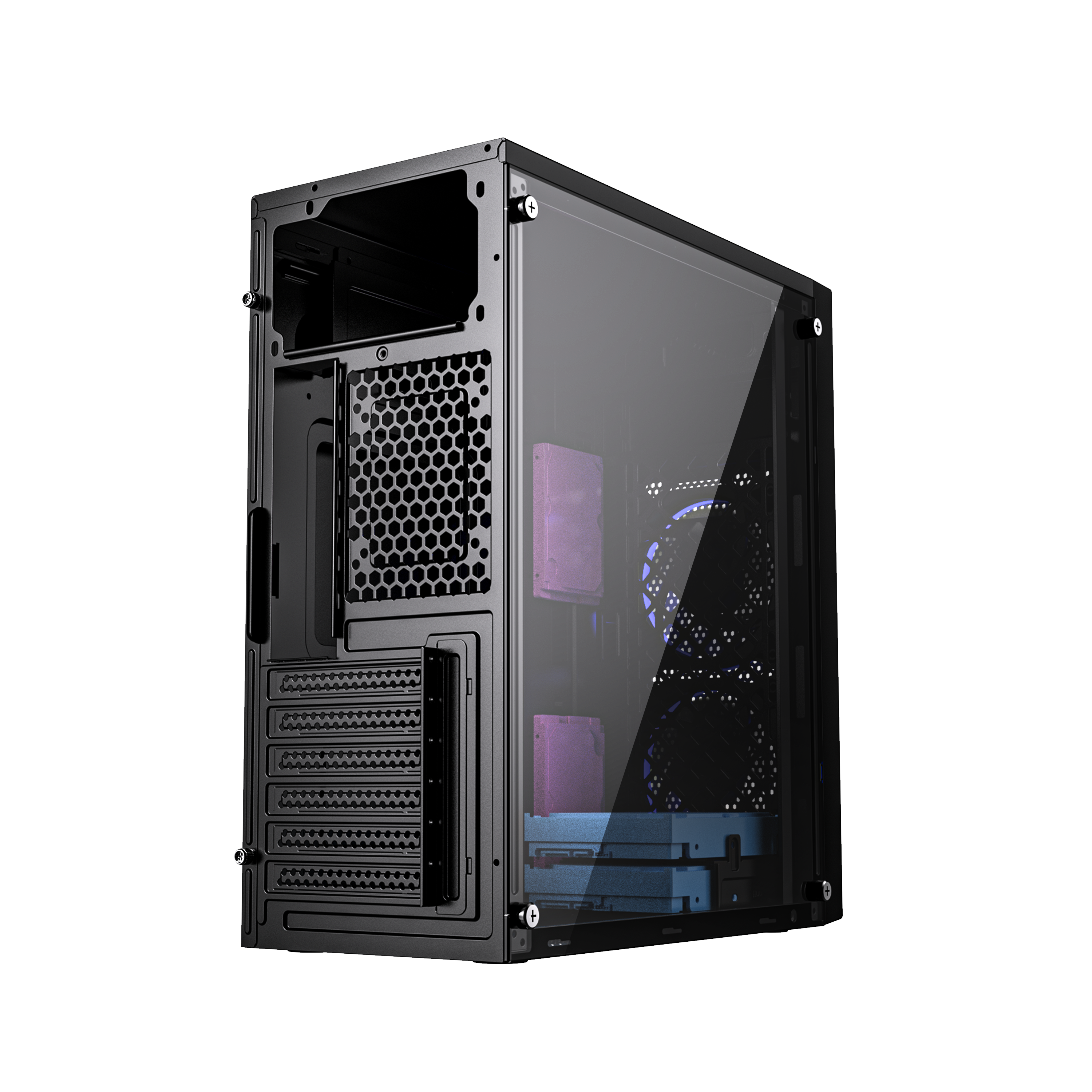 Gembird Fornax M100B. Forma: „Midi Tower“, Tipas: PC, Produkto spalva: Juoda. Sumontuoti priekiniai ventiliatoriai: 2x 120 mm, Palaikomi priekinių ventiliatorių skersmenys: 120 mm, Palaikomas galinio ventiliatoriaus skersmuo: 80 mm. Palaikomas kietojo disko dydis: 2.5,3.5,5.25". Plotis: 173 mm, Ilgis: 340 mm, Aukštis: 410 mm. Pakuotės plotis: 215 mm, Pakuotės gylis: 460 mm, Pakuotės aukštis: 427 mm
