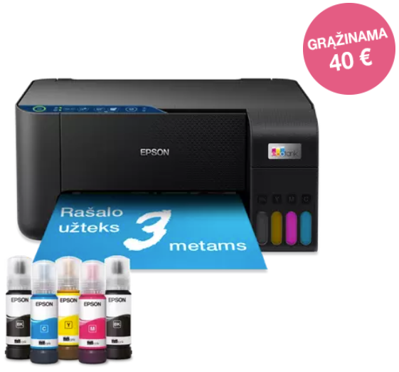 Epson EcoTank L3271 Spausdintuvas rašalinis spalvotas MFP A4 33 ppm USB Wi-Fi