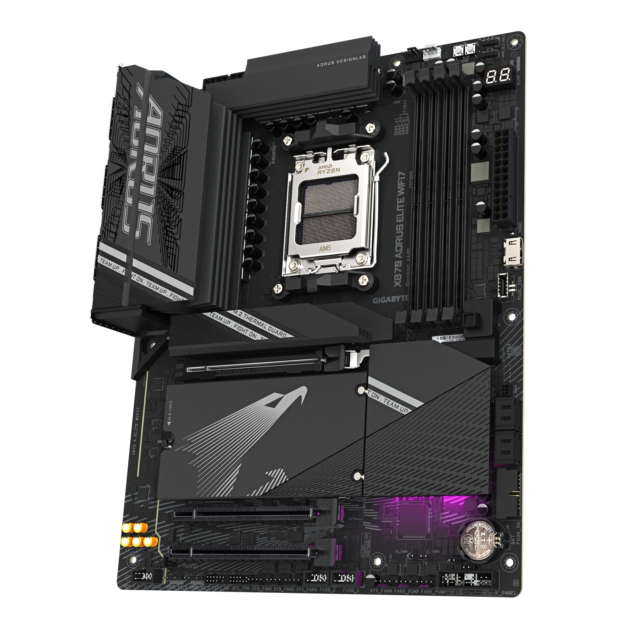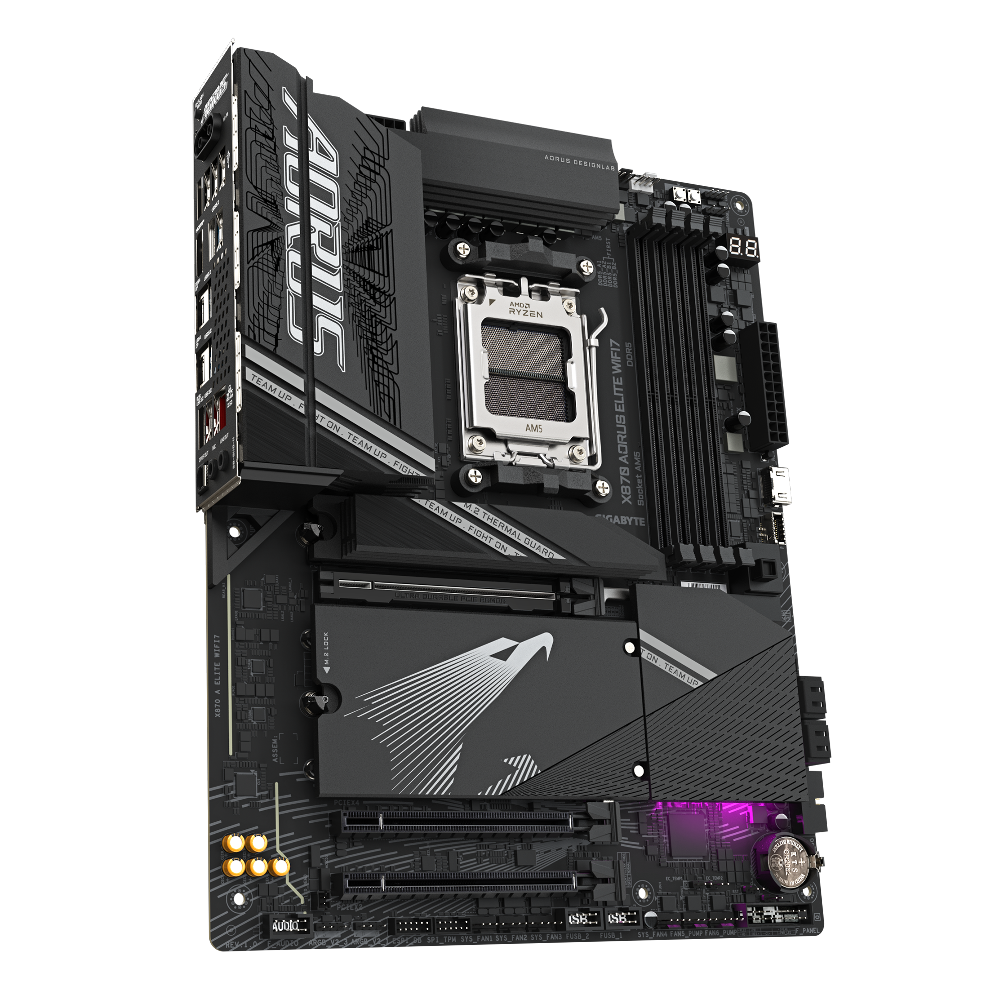 GIGABYTE X870 AORUS ELITE WIFI7. Procesoriaus gamintojas: AMD, Procesoriaus lizdas: AM5 lizdas, Procesorių suderinamumas: AMD Ryzen 7000 Series, AMD Ryzen 8000 Series, AMD Ryzen 9000 Series. Palaikomi atminties tipai: DDR5-SDRAM, Maksimali vidinė atmintis: 256 GB, Atminties angų tipas: DIMM. Palaikomi saugojimo kaupiklių sąsajos: M.2, SATA III, Palaikomi saugojimo kaupiklių tipai: HDD & SSD, RAID lygiai: 0, 1, 10. Eterneto sąsajos tipas: 2.5 Gigabit Ethernet, LAN kontroleris: Realtek RTL8125, „Wi-Fi“ standartas: Wi-Fi 7 (802.11be). Taikoma: PC, Motininės plokštės formos faktorius: ATX, Motininės plokštės sisteminio valdiklio šeima: AMD