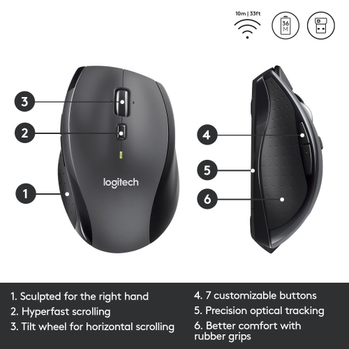 Logitech Marathon M705 Belaidė pelė, RF Wireless, 1000 DPI, Charcoal