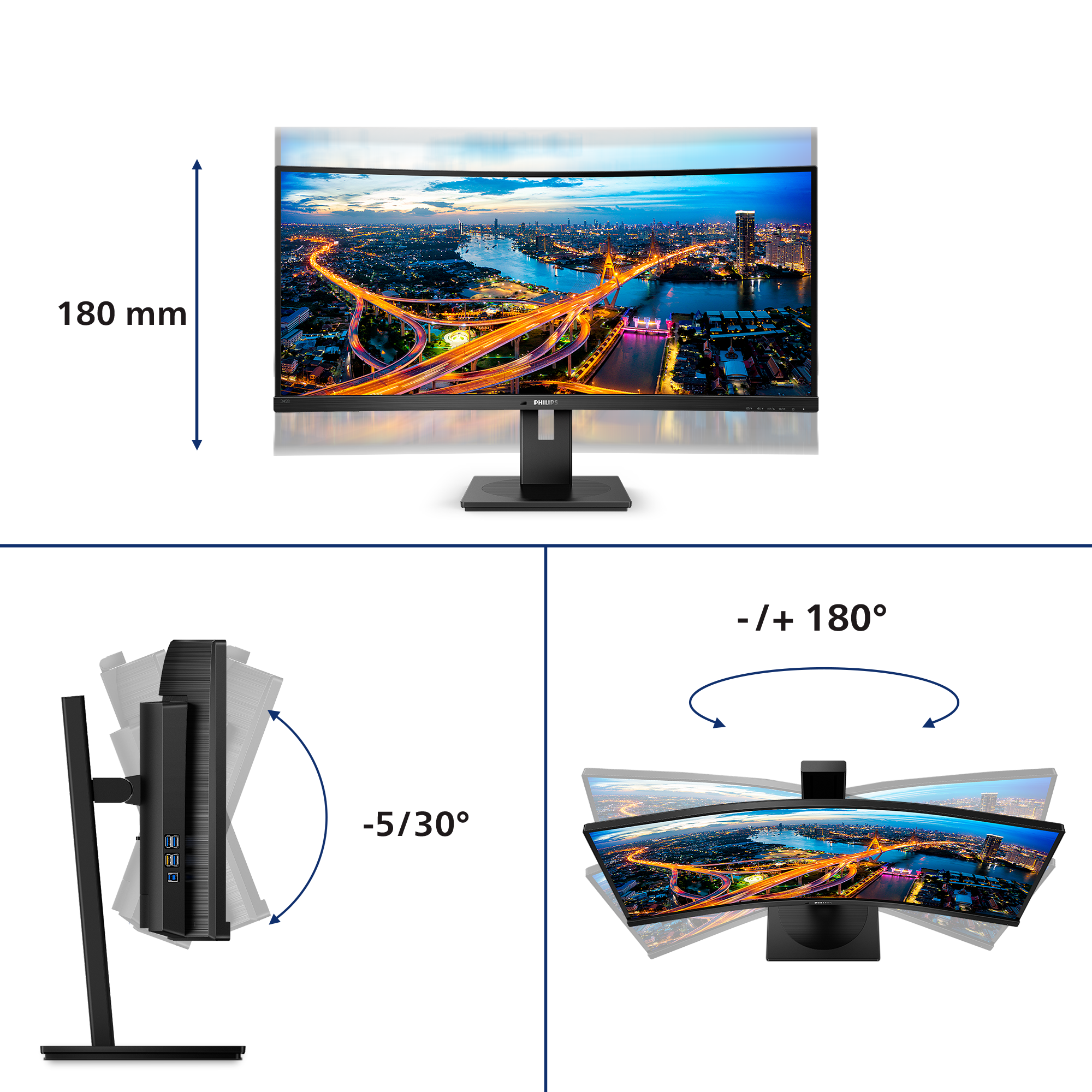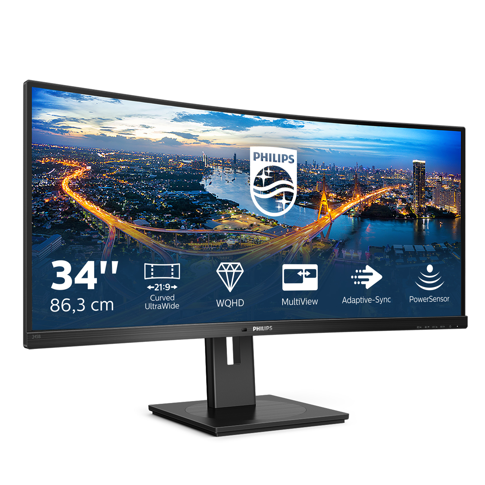 Philips | Curved UltraWide | 345B1C | 34 " | VA | WQHD | 21:9 | 100 Hz | 5 ms | 3440 x 1440 | 300 cd/m² | HDMI ports quantity 1 | Black | Warranty 24 month(s)